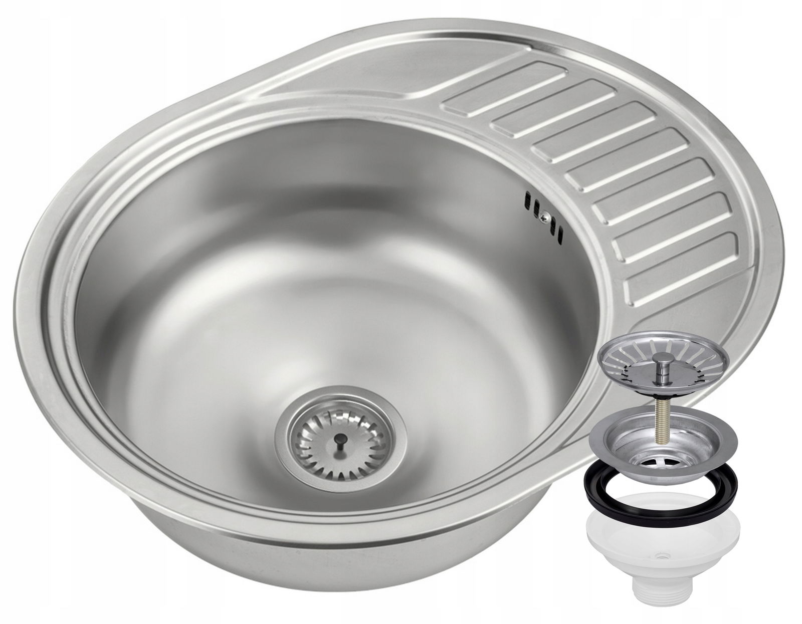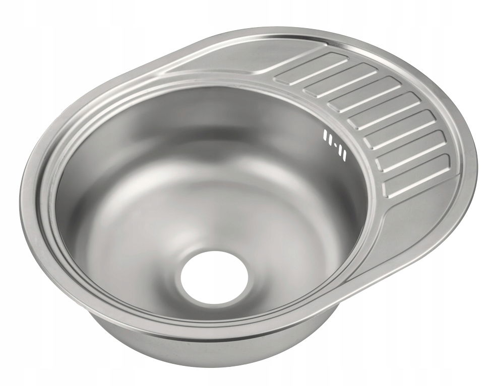 Okrągły model zlewozmywaka z ociekaczem wykonany ze stali nierdzewnej, która wykazuje niewrażliwość na działanie środków czyszczących, a także odporność na korozję.
