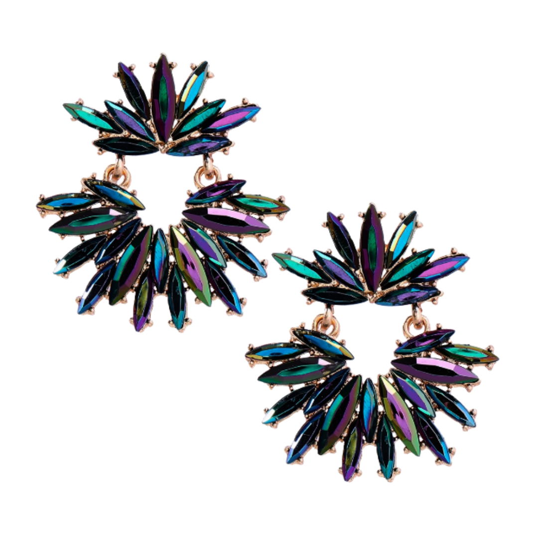 Efektowne kolczyki na sztyft z wiszącymi mieniącymi się rozetami podkreślą eleganckie i niecodzienne stylizacje. Wybierz je jeśli jesteś miłośniczką oryginalnej biżuterii.