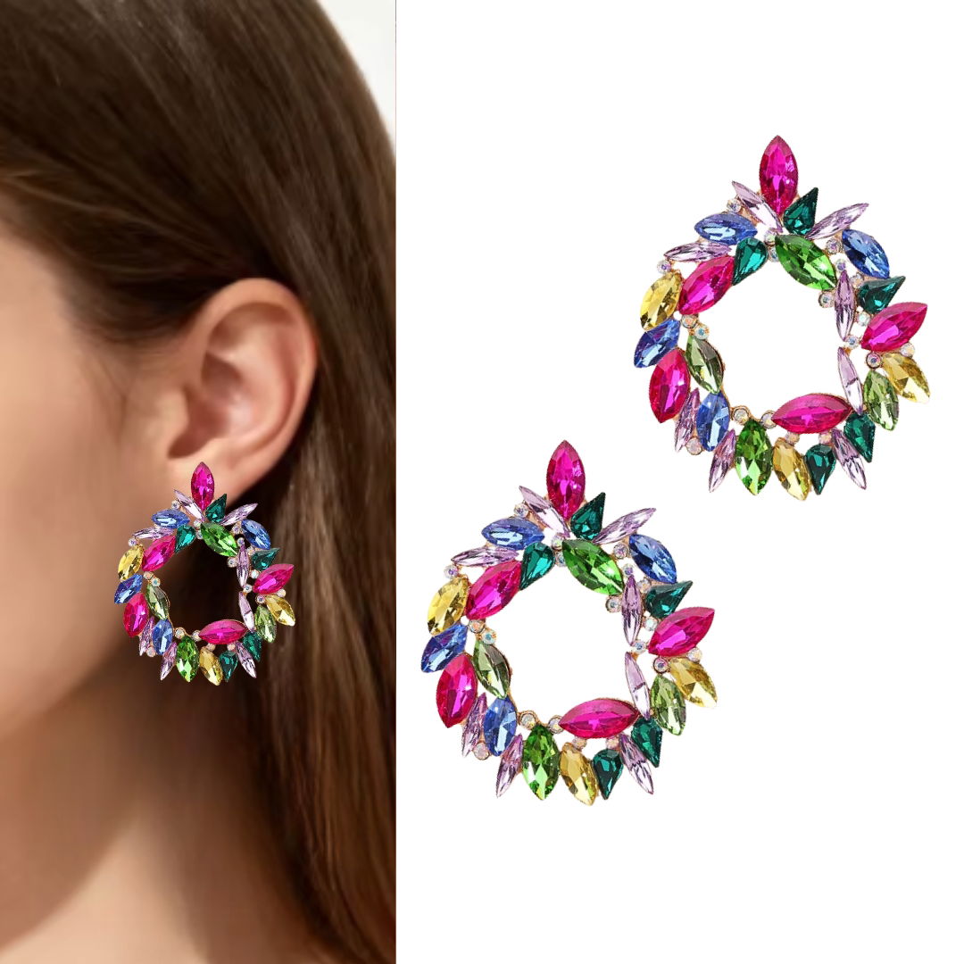 Okrągłe kolorowe kolczyki przy uchu z cyrkonii to modowy hit. Krótkie błyszczące kolczyki dodadzą elegancji i sprawią, że nawet zwykła sukienka nabierze charakteru.