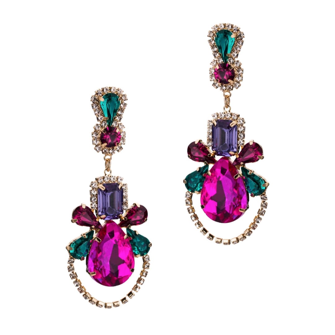 Ten model kolczyków zasługuje na dostrzeżenie przez miłośniczki stylu i koloru. Eleganckie połączenie złota, fuksji i zieleni tworzy efektowny wzór biżuterii wartej założenia na specjalne okazje.