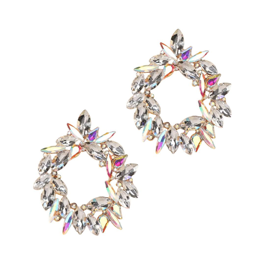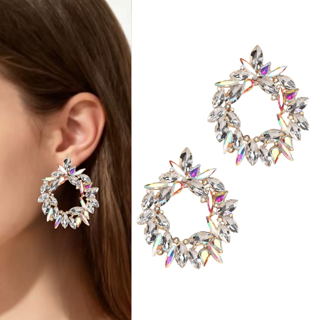 Złote kolczyki kryształowe opalizują okrągłe modne trendy biżuteria WOW
