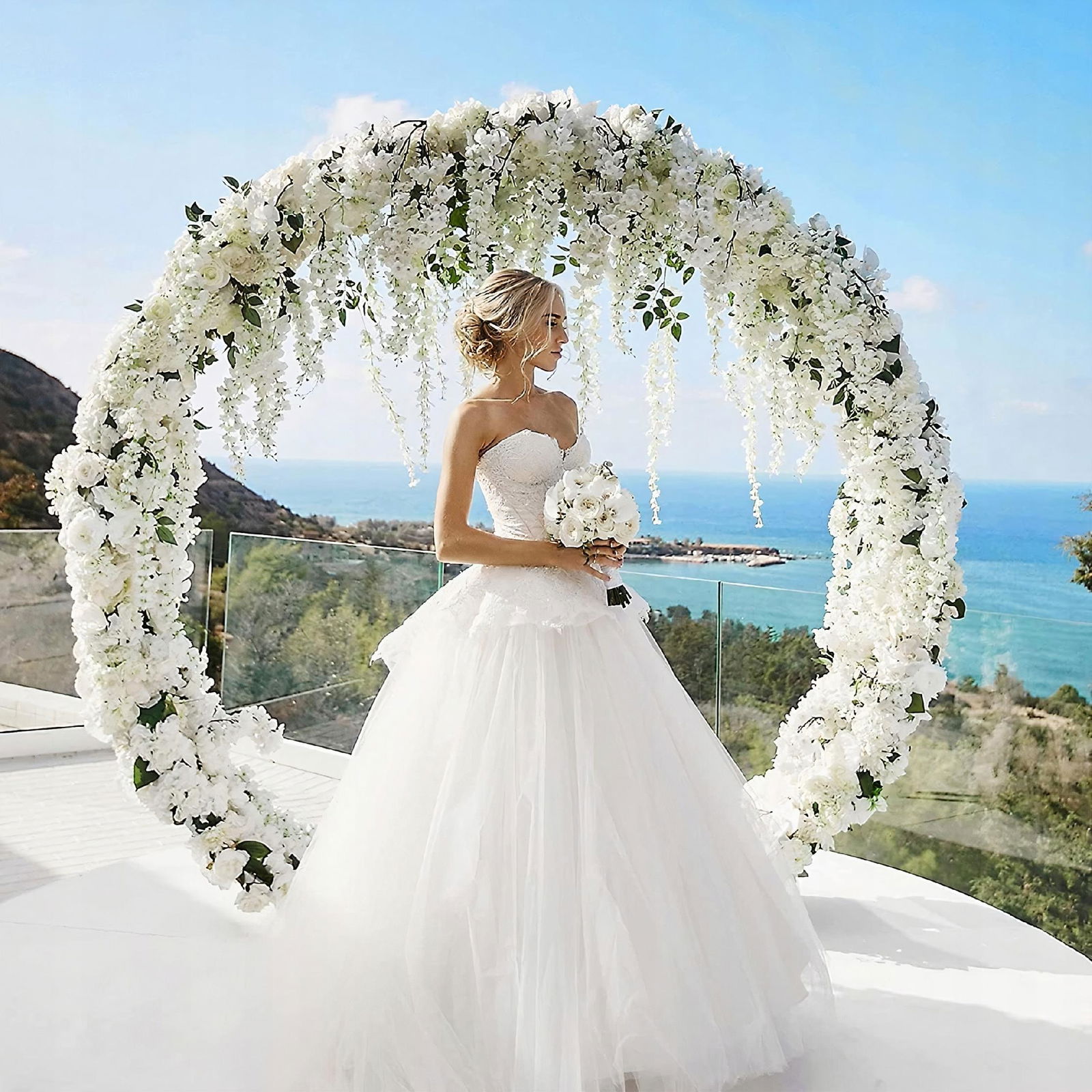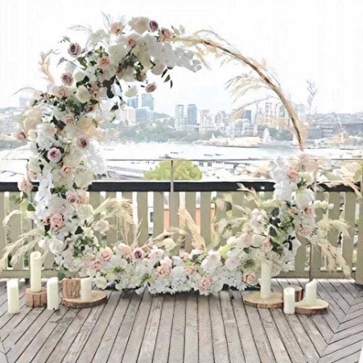 Metalowa rama oraz dokręcane nóżki zapewniają pełną stabilność nawet po zawieszeniu cięższych dekoracji, takich jak girlandy kwiatowe czy balony.