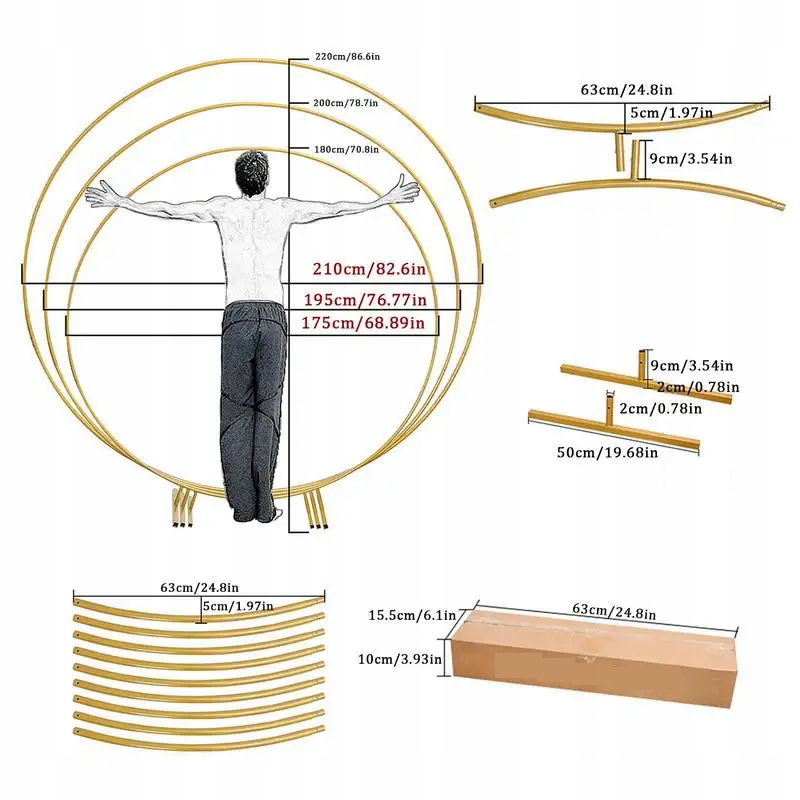 Złote Koło Na Balony Stojak Balonowy Stelaż Metalowy Ścianka Wesele 2,1M