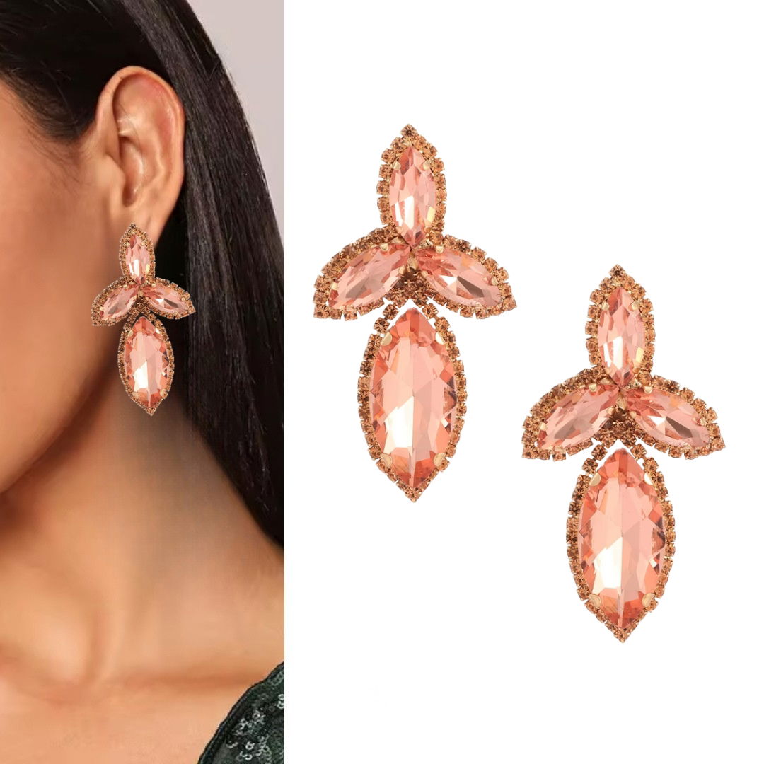 Złote łososiowe kolczyki brzoskwinia jasne duże kryształy wizytowe TREND