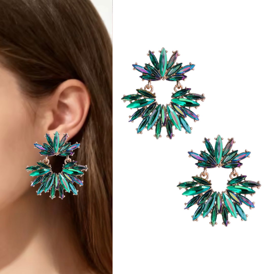 ZŁOTE zielone kolczyki wiszące aplikacje z cyrkoniami nowoczesne TRENDY