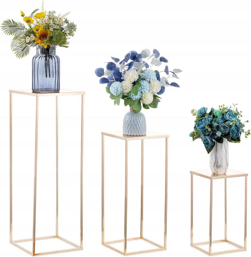 Elegancki design kostki i lista pakowania: Te srebrne/czarne/złote wazony na elementy centralne mają stabilną konstrukcję kostki. Prosty geometryczny kształt w połączeniu z nowoczesnym metalowym wykończeniem, dzięki czemu te wazony są eleganckie i wspaniałe, podniesie poziom i styl wystroju ślubnego oraz poprawi prezentację prostych kompozycji kwiatowych. Lista pakowania: Opakowanie zawiera trzy stojaki o różnych rozmiarach: 60 cm, 80 cm, 100 cm. Można je umieścić razem lub oddzielnie po obu stronach drogi.
