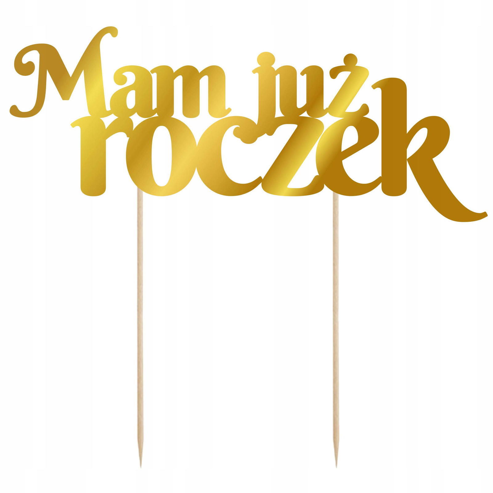 Złoty lustrzany topper z napisem Mam juz Roczek to wspaniały dopełniający dodatek na przyjęcie urodzinowe.