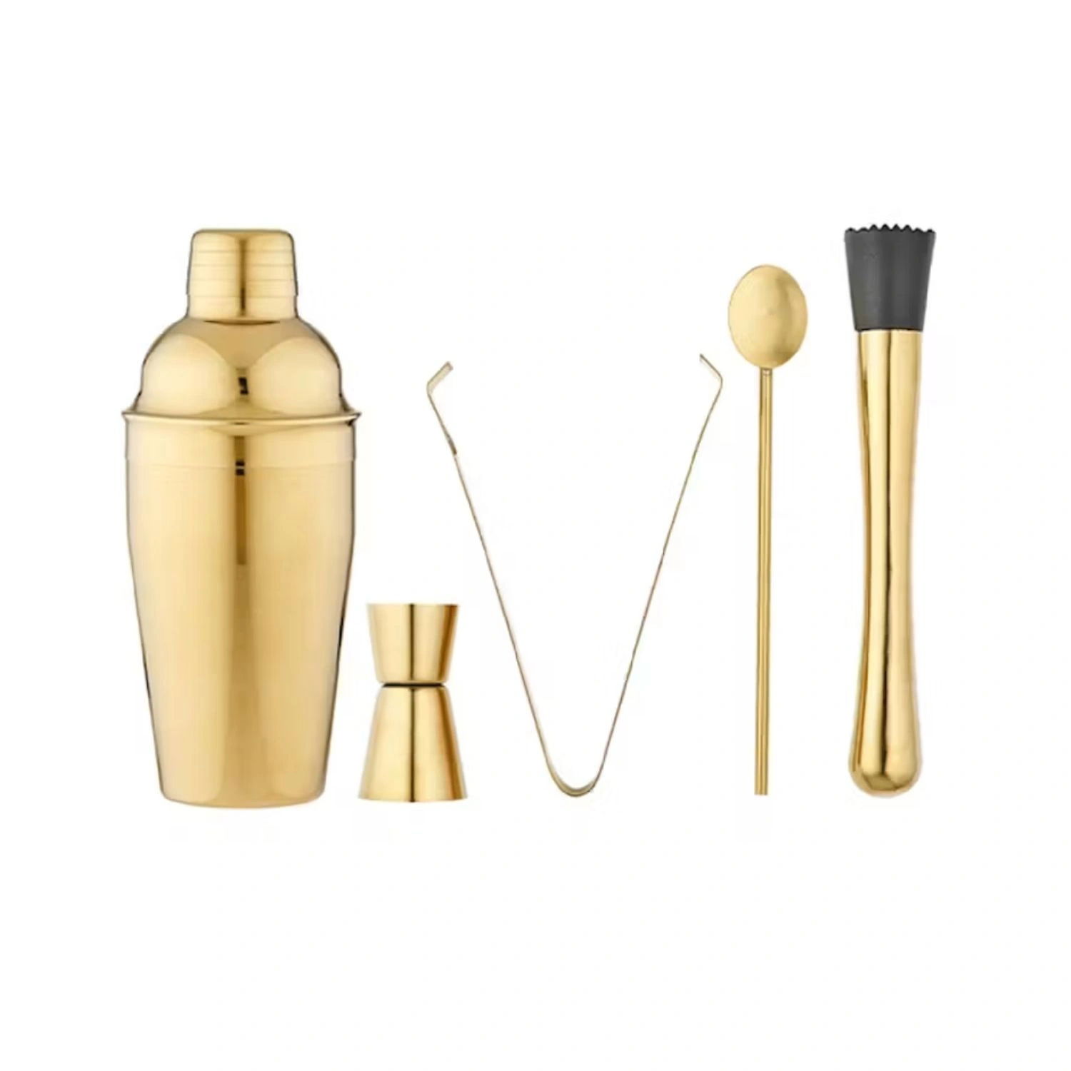 Złoty zestaw barmański Tempa 5 el. shaker miarka szczypce tłuczek łyżka