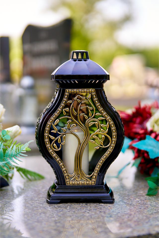 Znicz kapliczka GLAMUR w formie eleganckiego wazonu to połączenie wyszukanej estetyki i funkcjonalności. Dzięki ozdobnemu motywowi z drzewkiem prezentuje się wyjątkowo stylowo. To znicz, który nie tylko przyciąga uwagę swoim wyglądem, ale przede wszystkim stanowi trwały wyraz pamięci i szacunku dla bliskich, którzy odeszli.