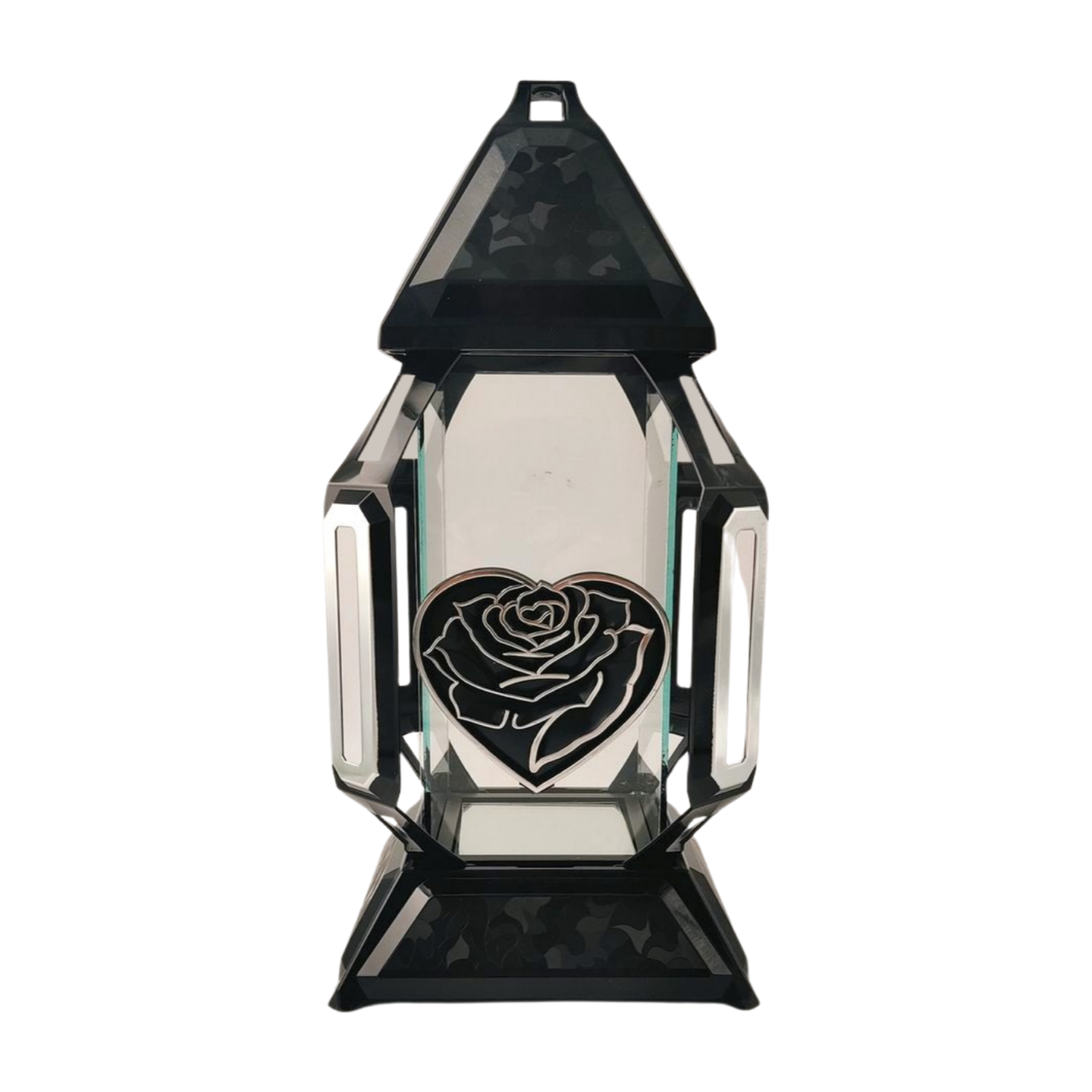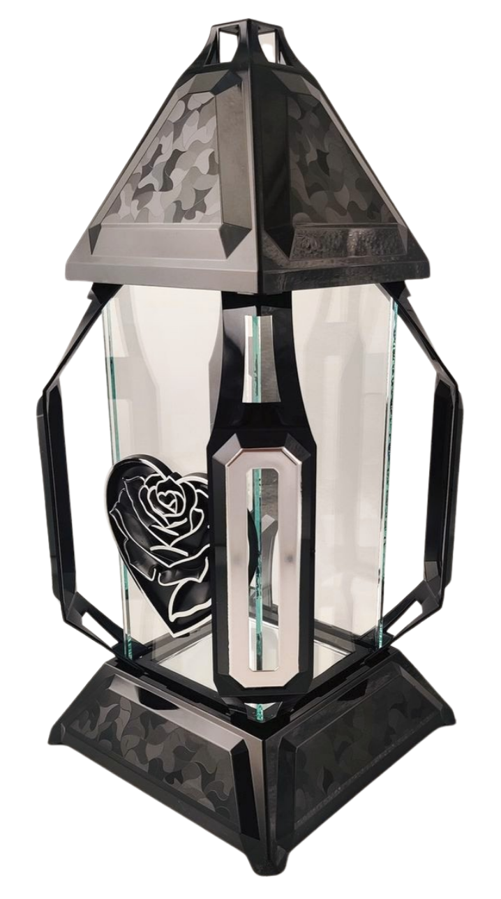 Znicz kapliczka KORTE duży serce edera czarny/srebro 41cm