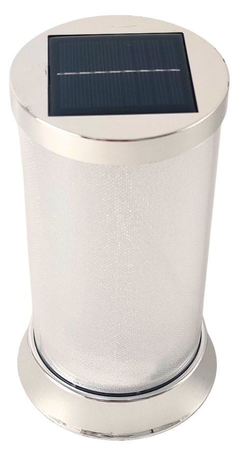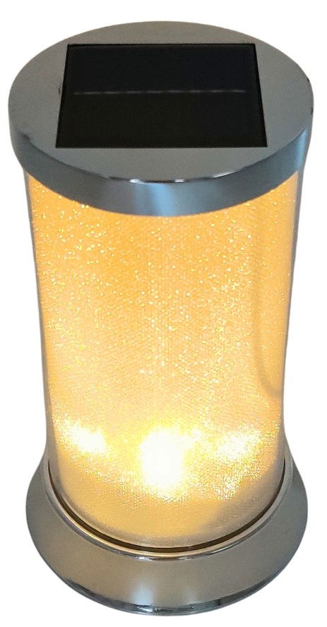 Znicz solarny LED SUBITO (S082) srebrny/biały ciepły 16 cm