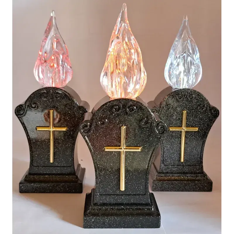 Znicz posiada realistyczny płomień LED w kształcie ognia, który emituje, migoczące światło. Elegancki wystrój z krzyżem na froncie sprawia, że doskonale nadaje się do upamiętnienia bliskich. Pojemne akumulatorki zapewniają działanie znicza przez całą noc nawet w pochmurne dni. Po włączeniu lampki diody zapalają się w sposób imitujący rzeczywisty płomień świecy. Parametry znicza: