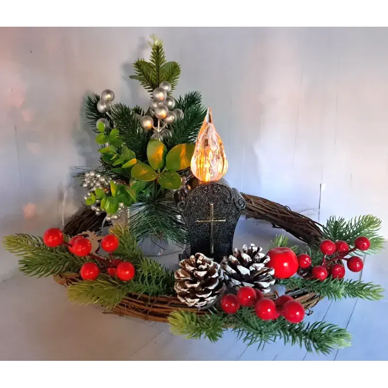 Znicz posiada realistyczny płomień LED w kształcie ognia, który emituje, migoczące światło. Elegancki wystrój z krzyżem na froncie sprawia, że doskonale nadaje się do upamiętnienia bliskich. Pojemne akumulatorki zapewniają działanie znicza przez całą noc nawet w pochmurne dni. Po włączeniu lampki diody zapalają się w sposób imitujący rzeczywisty płomień świecy. Parametry znicza: