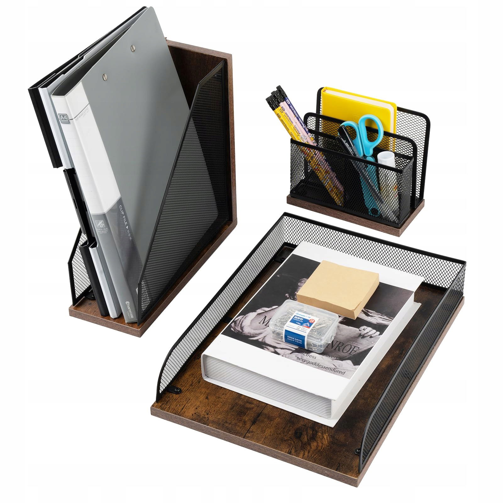 ZNMYDMT Zestaw biurowy 3w1 - organizer na biurko, drewno, siatka R7.4