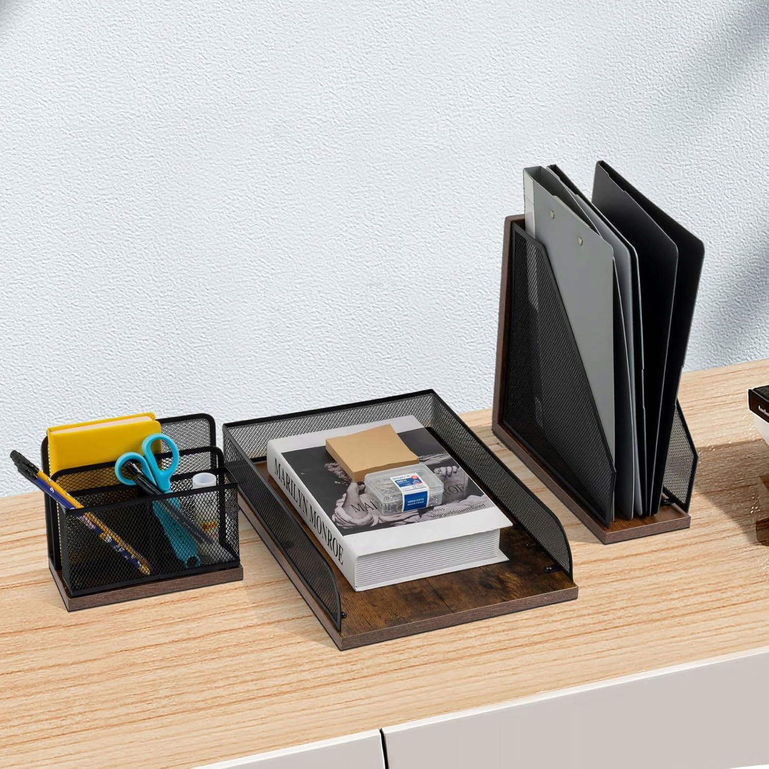 - ZWIĘKSZ WYDAJNOŚĆ PRACY: Organizery na biurko, w tym (1) pojemnik na ołówki i sorter na listy, (1) tacka na listy, (1) stojak na czasopisma. Utrzymaj porządek na biurku i przyspiesz swoją pracę.