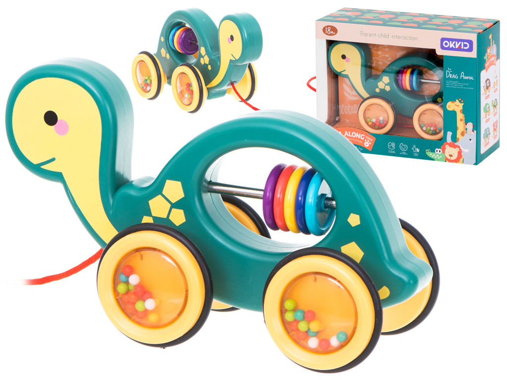 Dodatkowo zabawa kółkami w żółwiu oraz ciągnięcie zabawki na sznurku zapewni doskonały rozwój zdolności manualnych dzieci, oraz zachęci dzieci do stawiania pierwszych kroków, aby mogły wyprowadzić żółwika na spacer.