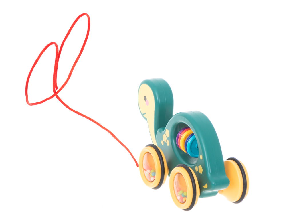 Do grzechotki przyczepiony jest długi sznurek, który umożliwia wygodne ciągnięcie jej za sobą, dzięki temu żółwika można zabrać na długi spacer i wspaniałą przygodę. Co więcej, gdy uroczy kompan dziecka idzie (a dokładniej to jedzie), kuleczki umieszczone w jego kołach będą grzechotać, zapewniając jeszcze więcej frajdy dzieciom.