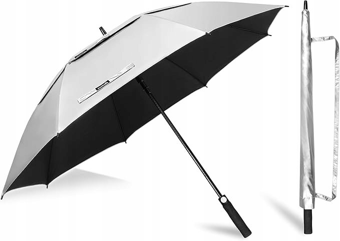 - ☀️ Filtr przeciwsłoneczny UPF 50+: Ten parasol golfowy wykonany jest z tkaniny poliestrowej 210T. To wodoodporna tkanina ultrafioletowa. Co ważniejsze, zewnętrzna srebrna powłoka może odbijać 98% szkodliwych promieni ultrafioletowych ze słońca. Dlatego ten duży parasol jest parasolką przeciwsłoneczną, który sprawdza się dobrze w upalne lata
