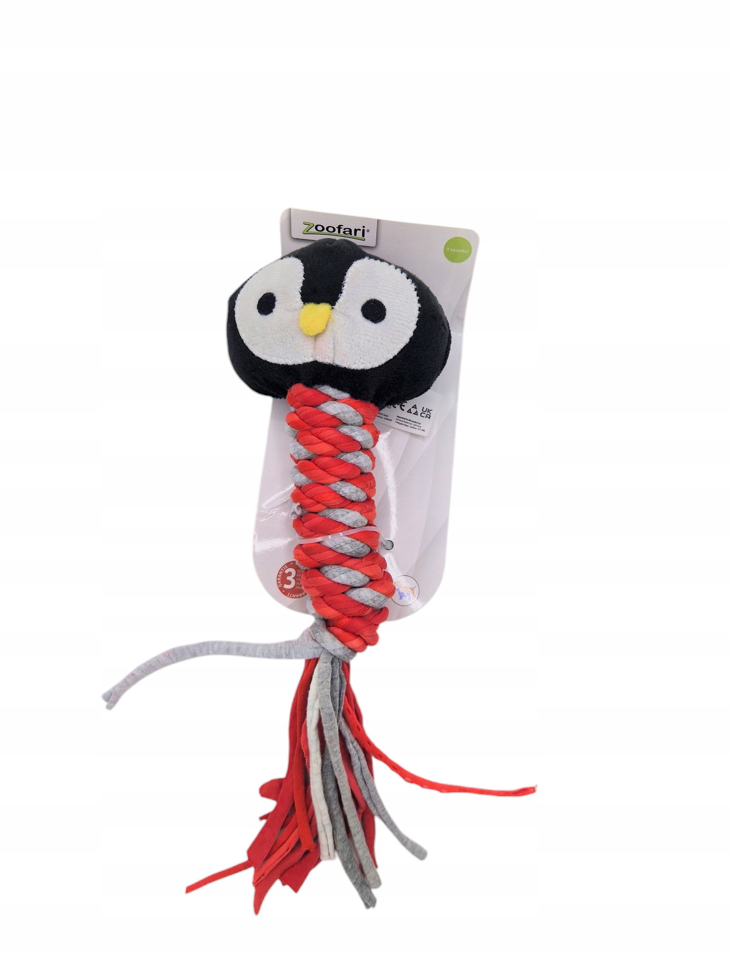 Pingwinek od Zoofari to miękka, pluszowa zabawka dla psa, która łączy w sobie funkcję szarpaka, gryzaka i zabawki interaktywnej. Wbudowana piszczałka sprawia, że pies chętniej angażuje się w zabawę, a miękki materiał jest przyjemny w dotyku i łatwy do czyszczenia. Idealna do codziennych harców, aportowania i zaspokajania naturalnych instynktów żucia.