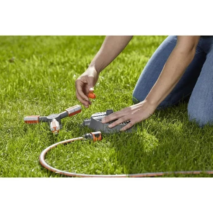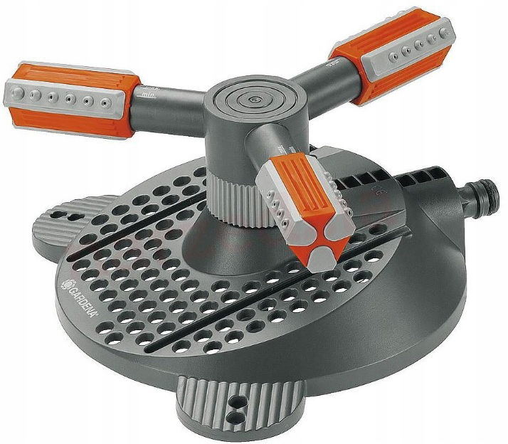 Przeznaczony do małych i większych powierzchni. Gwarantuje nawadnianie obszarów o powierzchni od 9 do 310 metrów kwadratowych. Posiada nastawne, precyzyjne dysze, które umożliwiają równomierne rozprowadzanie wody. Funkcja regulacji przepływu wody, pozwala na optymalne dostosowywanie zasięgu wyrzutu. Podstawa zraszacza stabilizuje go podczas pracy i ułatwia przestawianie.