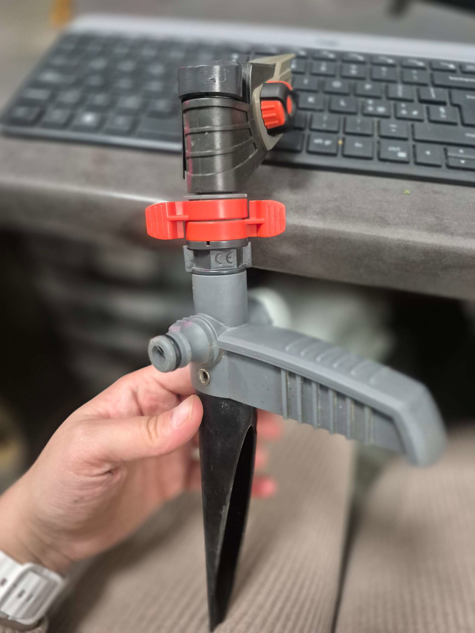 Łatwe przenoszenie to kolejna zaleta naszego zraszacza. Dzięki mocnej szpilce, zraszacz stabilnie wbija się w trawnik i pozwala na szybkie przemieszczanie. Systemowe przyłącze umożliwia rozbudowę, pozwalając na połączenie kilku zraszaczy.