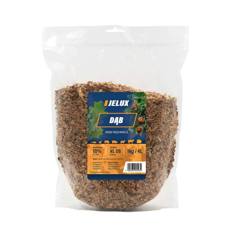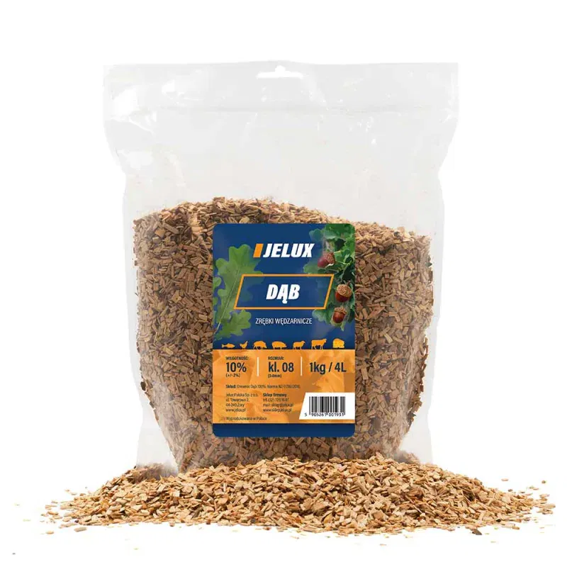 Zrębki wędzarnicze Dąb klasa 08 1kg JELUX