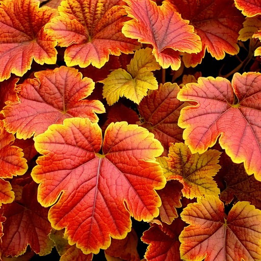 To niezwykle barwna odmiana żurawki, która zmienia swoje ubarwienie w zależności od pory roku. ✨ Wiosną i latem liście mają złocistożółtą barwę z intensywnie czerwonymi żyłkami, które tworzą malowniczy, kontrastowy rysunek. Jesienią przebarwiają się na głęboką czerwień i pomarańcz, dzięki czemu roślina zachwyca przez cały sezon. Dodatkowym atutem są delikatne, białe kwiaty pojawiające się od czerwca do sierpnia, unoszące się na smukłych łodyżkach ponad kępą liści.
