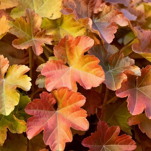 ⚡️ Kolor liści: Ciepłe odcienie miedzi, różu i brązu, przechodzące w bordowe tonacje.