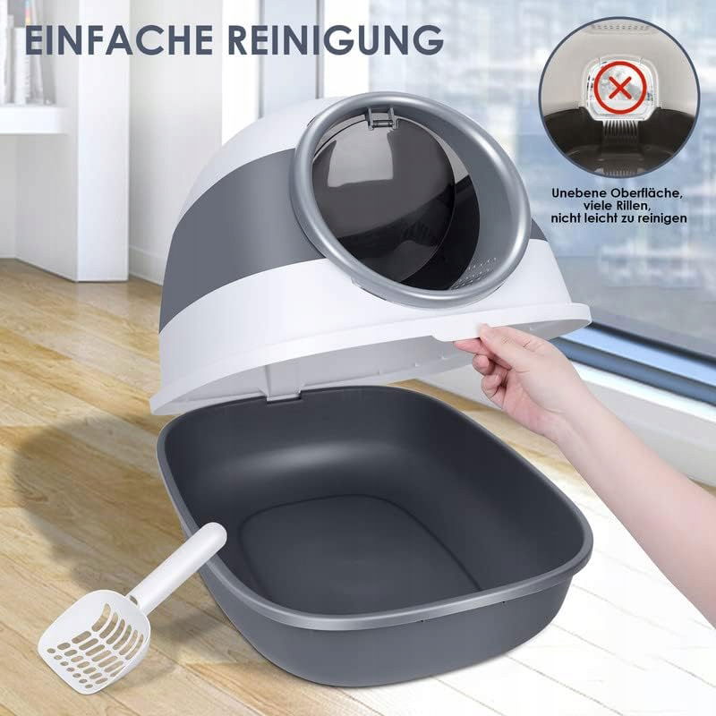 - Łatwe czyszczenie: ta kuweta dla kota z szufelką do żwirku dla kota ma konstrukcję z klapką 180 stopni, którą można wyczyścić poprzez szybkie i wygodne odwrócenie pokrywy i czyszczenie za każdym razem bez ślepych zaułków. Można je również prać w wodzie.