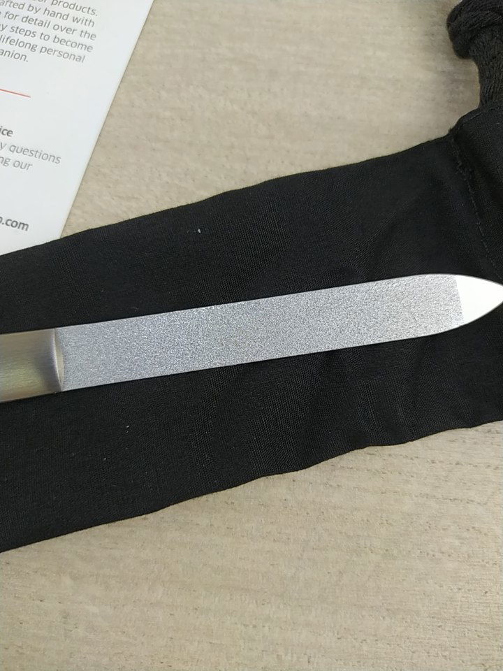 Pilnik posiada zaokrągloną końcówkę, która może służyć do delikatnego czyszczenia spodniej części paznokcia. Matowe wykończenie i ergonomiczna konstrukcja sprawiają, że narzędzie doskonale leży w dłoni i prezentuje się elegancko w każdej kosmetyczce.