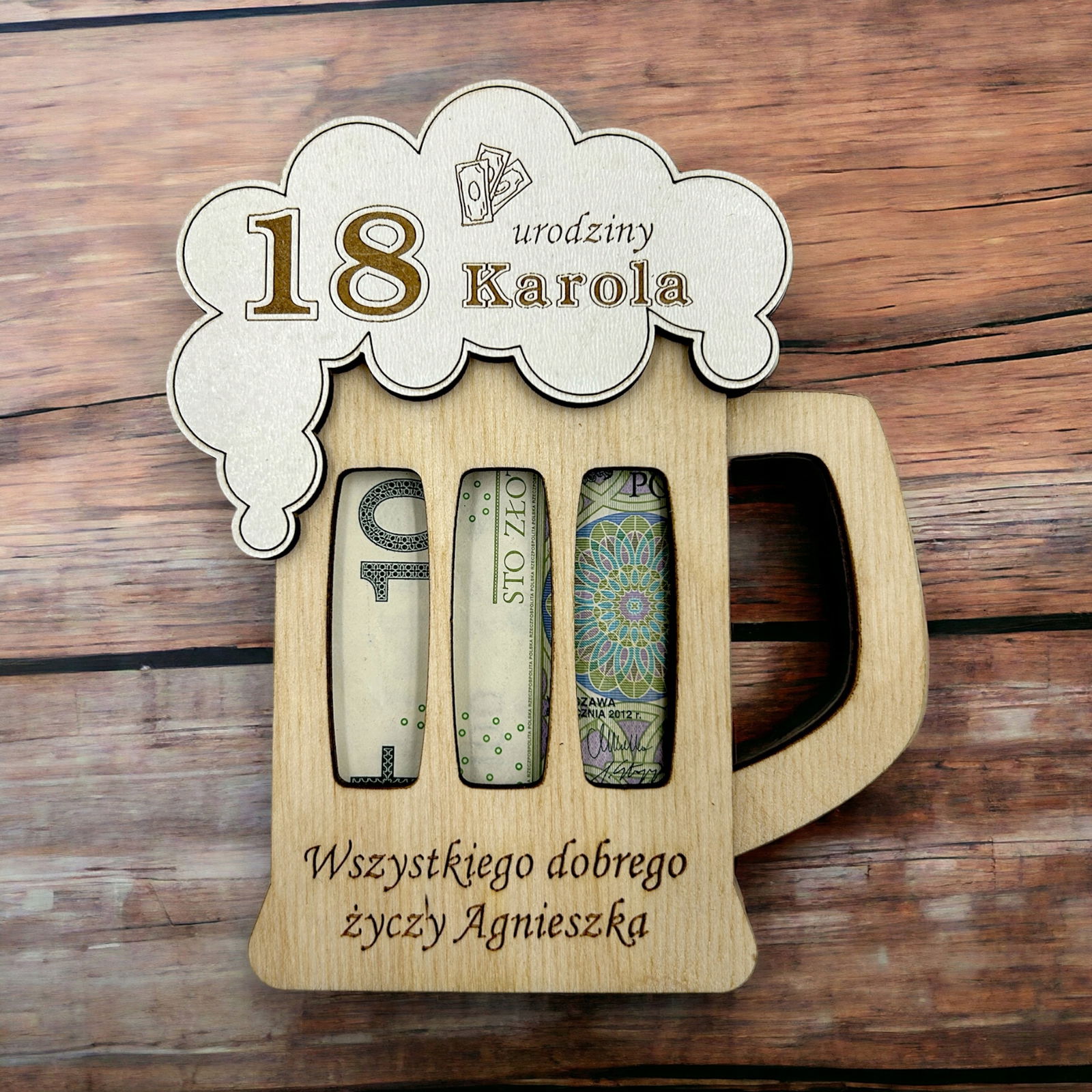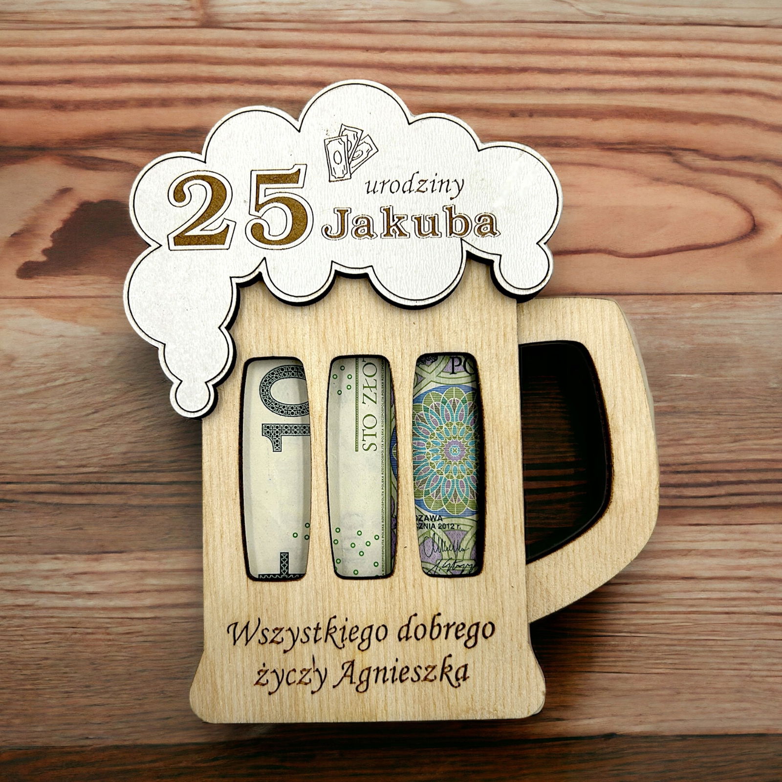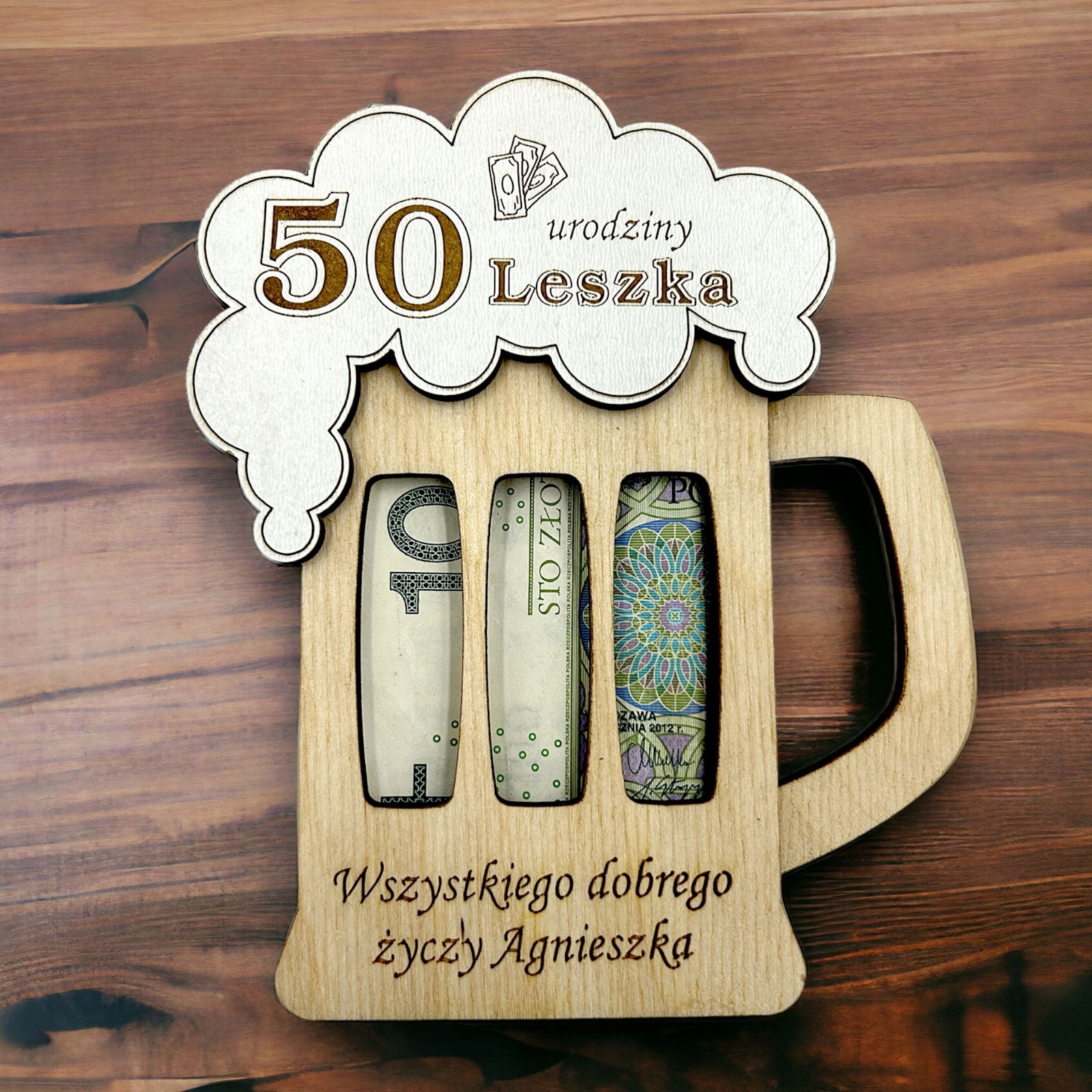 Nasz drewniany bon, voucher na pieniądze to super pomysł na wręczenie pieniędzy bliskiej osobie w dekoracyjny i oryginalny sposób.