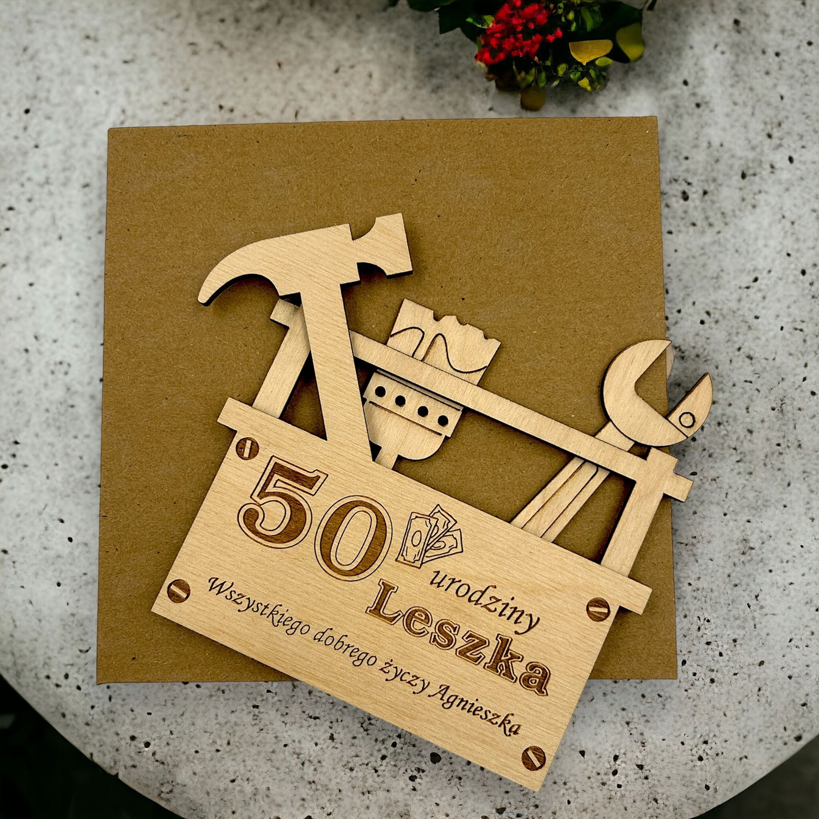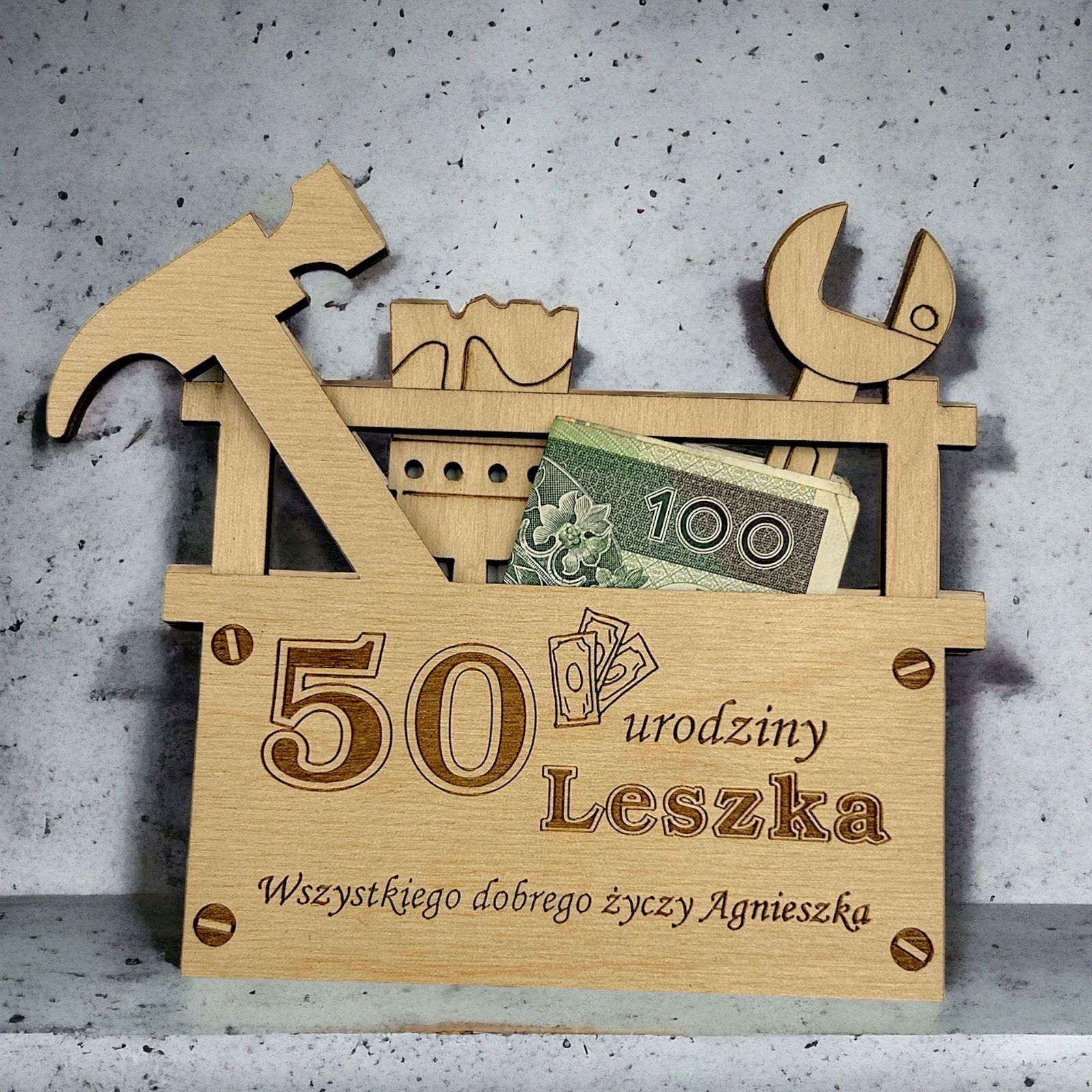 Nasz drewniany bon, voucher na pieniądze to super pomysł na wręczenie pieniędzy bliskiej osobie w dekoracyjny i oryginalny sposób.