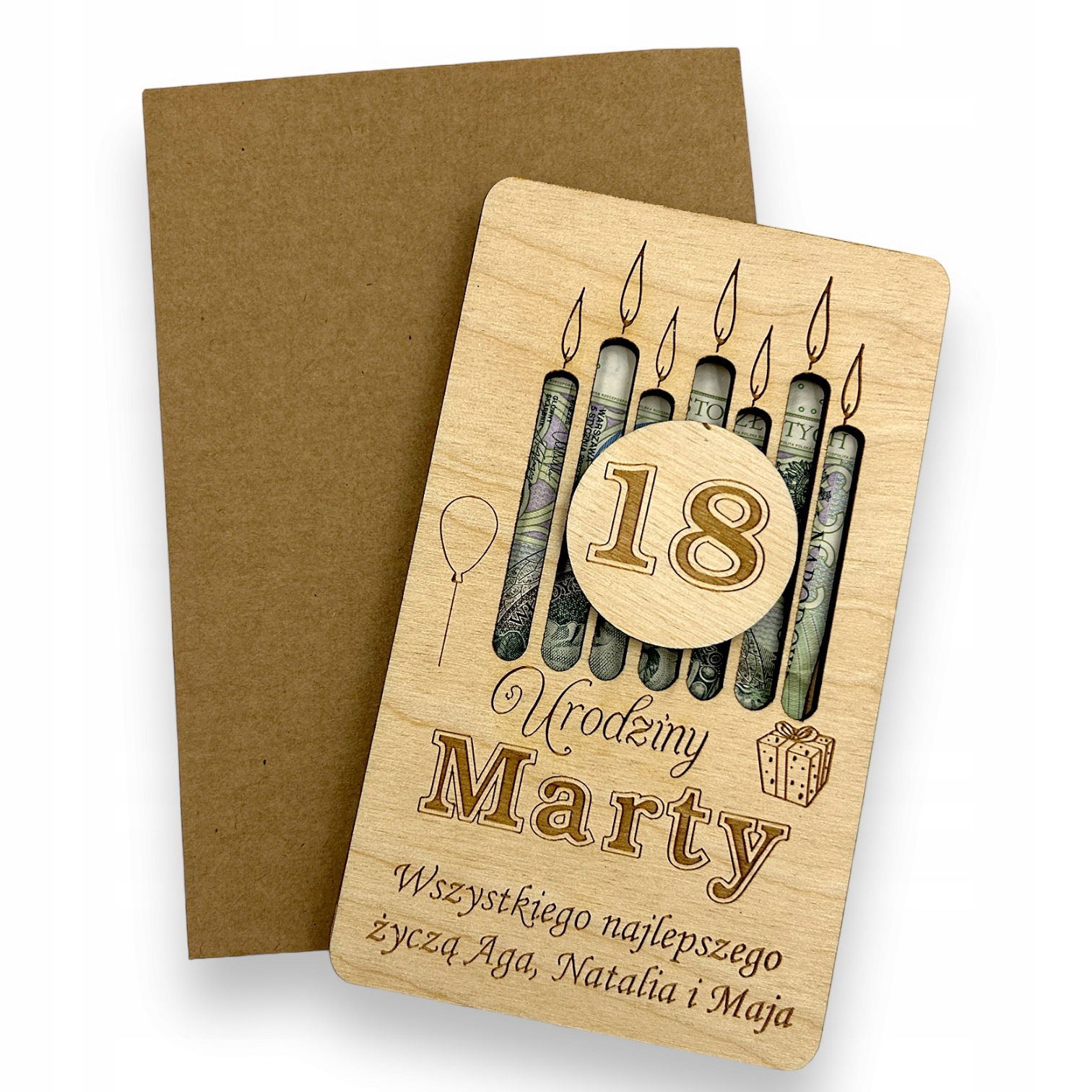 Życzenia na urodziny kartka bon podarunkowy na pieniądze 18 30 50 PR122