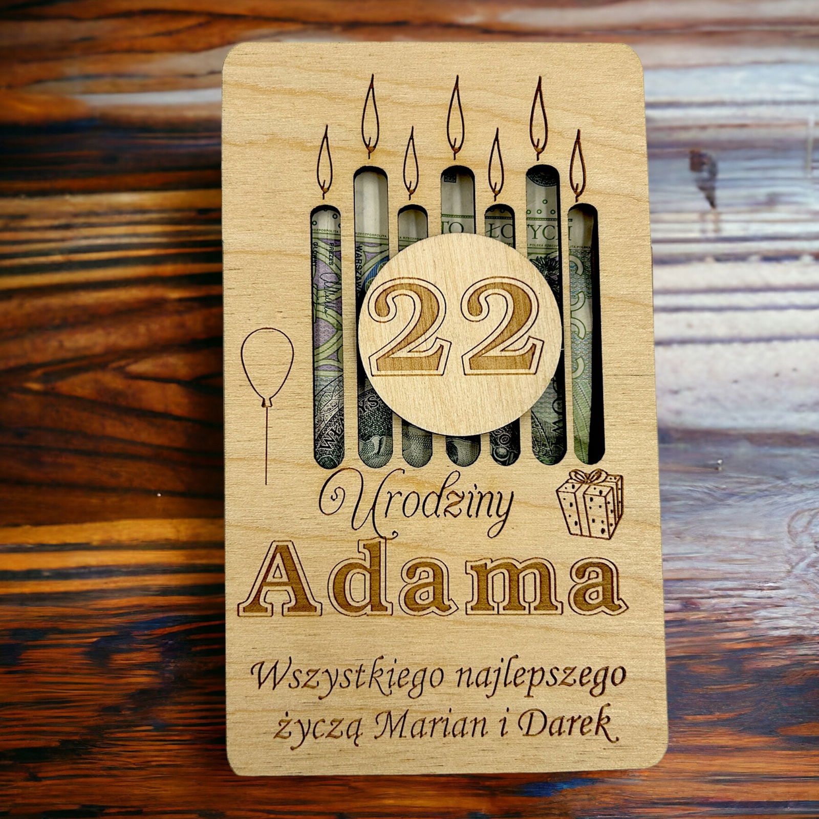 Nasz drewniany bon, voucher na pieniądze to super pomysł na wręczenie pieniędzy bliskiej osobie w dekoracyjny i oryginalny sposób.