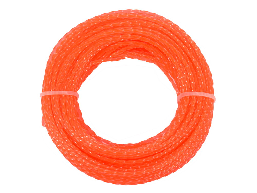 Żyłka tnąca do kos i podkaszarek - przekrój kwadratowy dodatkowo skręcony - o grubości 2 mm i długości 15 metrów.