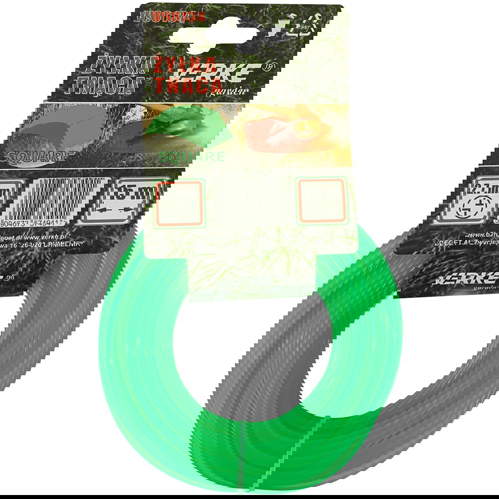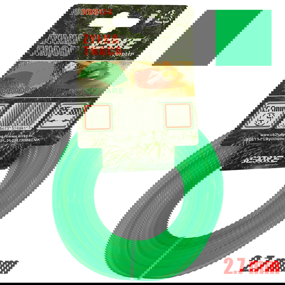 Żyłka tnąca o przekroju kwadratowym i średnicy 2,7 mm oraz długości 15 mb. renomowanej firmy Verke. Przeznaczona jest do stosowania ze wszystkimi podkaszarkami i kosami spalinowymi rożnych producentów.