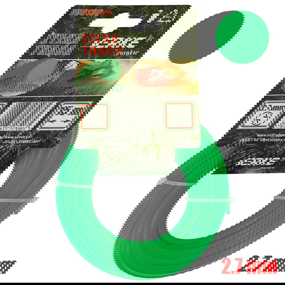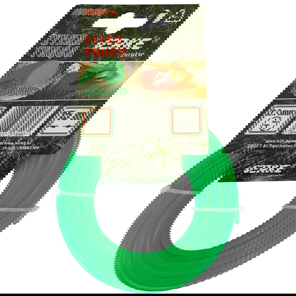 Żyłka tnąca o przekroju okrągłym i średnicy 2,7 mm oraz długości 15 mb. renomowanej firmy Verke. Przeznaczona jest do stosowania ze wszystkimi podkaszarkami i kosami spalinowymi rożnych producentów.