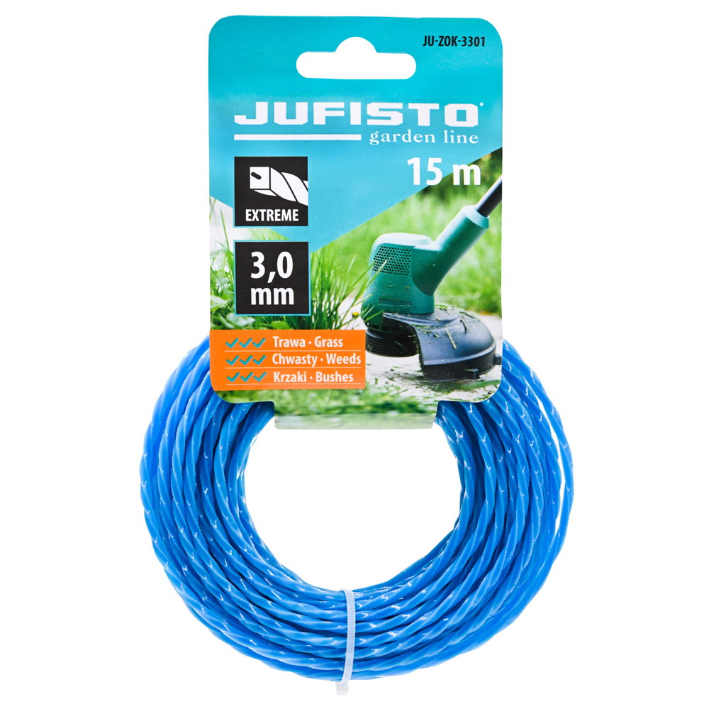 ŻYŁKA TNĄCA DO KOS I PODKASZAREK 3 MM 15 MB JUFISTO JU-ZOK-3301 SKRĘCANA + RDZEŃ