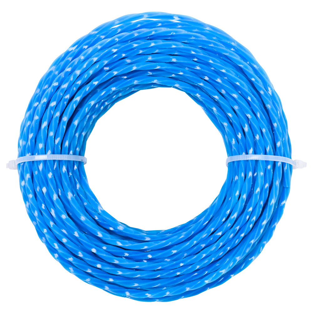 Żyłka tnąca do kos i podkaszarek - przekrój kwadratowy skręcany z rdzeniem wewnętrznym - o grubości 3 mm i długości 15 metrów.