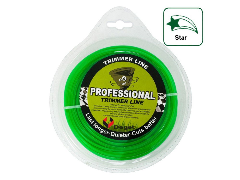 Żyłka tnąca Trimmer Line o przekroju gwiazdki i średnicy 3 mm oraz długości 50 mb. renomowanej firmy Deget. Przeznaczona jest do stosowania ze wszystkimi podkaszarkami i kosami spalinowymi rożnych producentów.