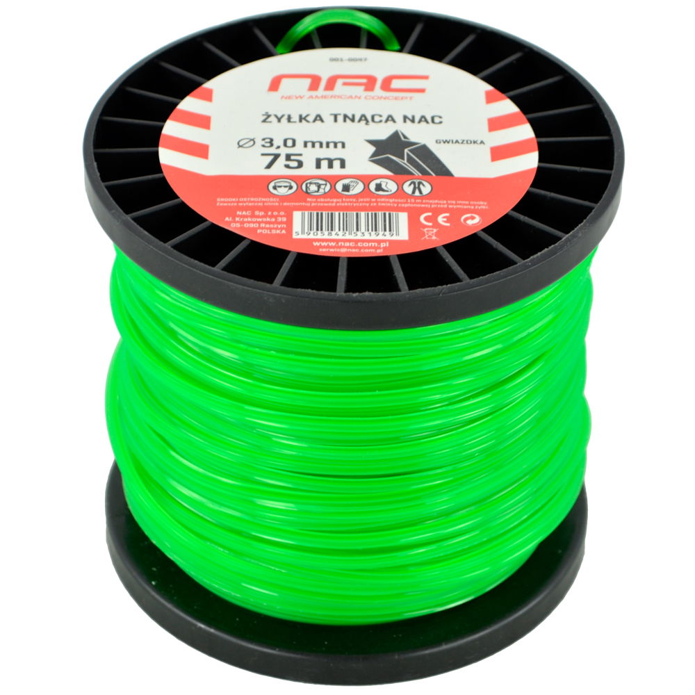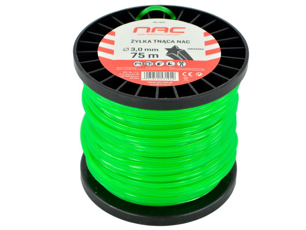 ŻYŁKA TNĄCA NAC DO KOS I PODKASZAREK ŚREDNICA 3 MM DŁUGOŚĆ 75 MB GWIAZDKA
