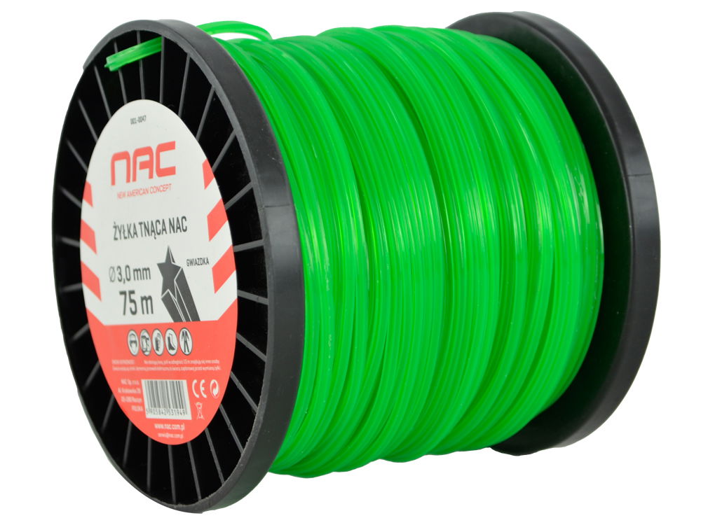 Żyłka tnąca do kos i podkaszarek NAC 001-0047 - przekrój gwiazdki - o grubości 3 mm i długości 75 metrów.