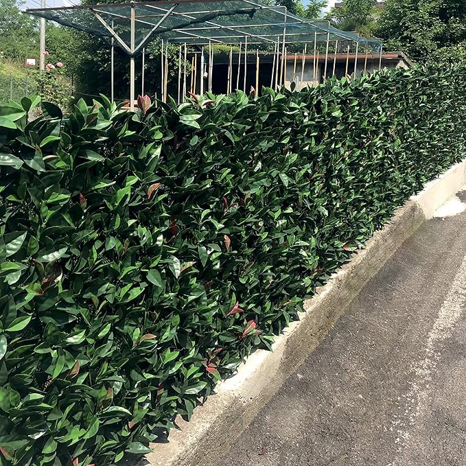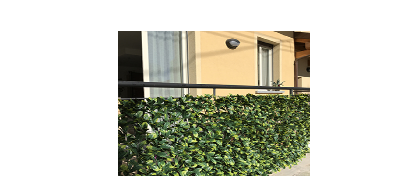 Sztuczny żywopłot składający się z kwadratowej siatki z tworzywa sztucznego z arkuszami 3D polietylenu typ Fotinia.