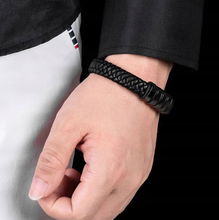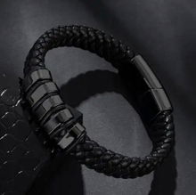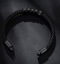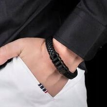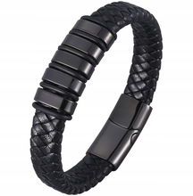 Bransoleta Skórzana Stalowa Czerwona Czarna Srebrna Mocne Zapięcie Magnes