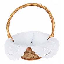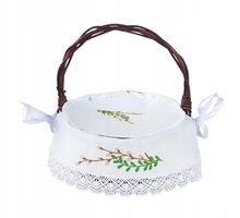 SERWETKA DO KOSZYCZKA FOLK - HAFT BAZIE I TULIPAN - WYKOŃCZONA KORONKĄ